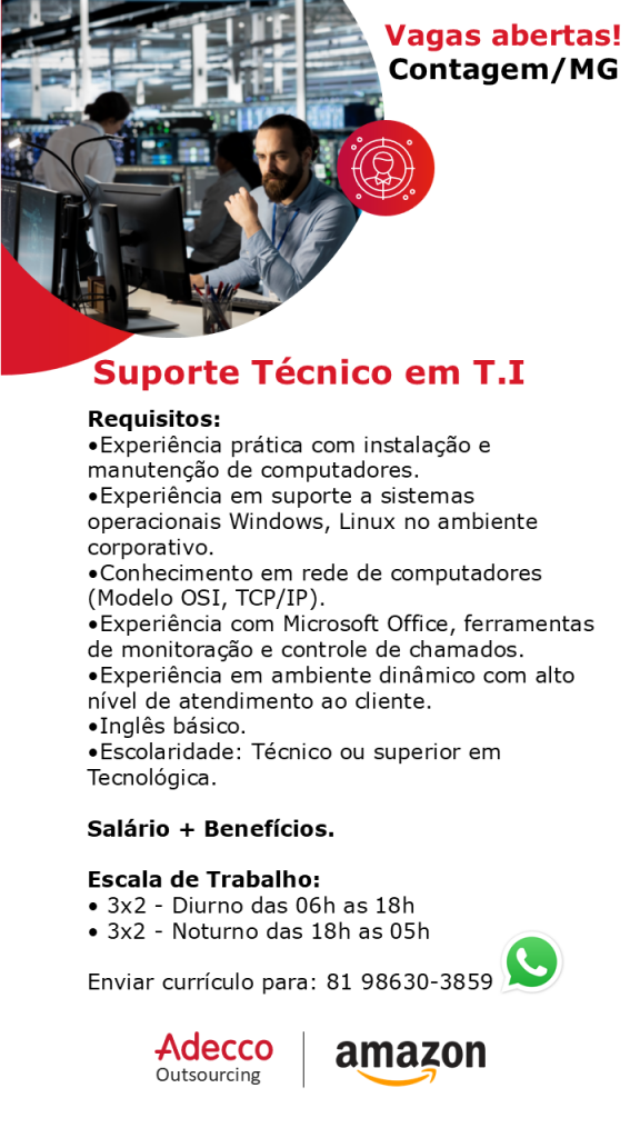 - Manutenção e suporte aos equipamentos de TI utilizados nas instalações da Amazon;