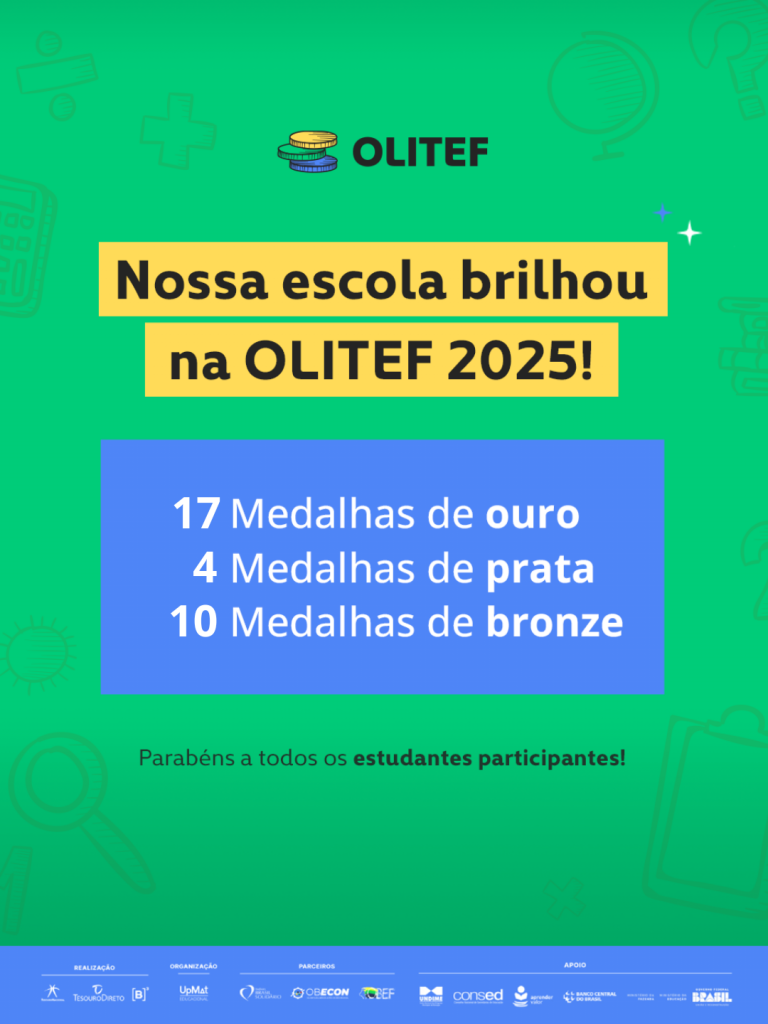 É com grande satisfação que compartilhamos o excelente desempenho dos nossos estudantes na Olimpíada do Tesouro Direto de Educação Financeira (OLITEF 2025).