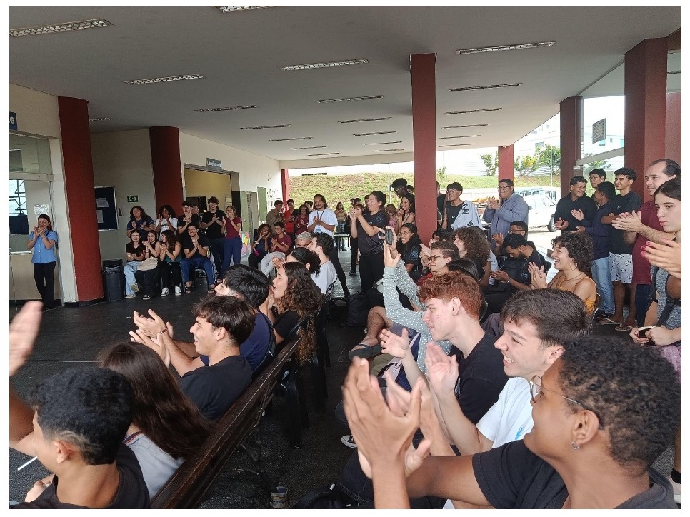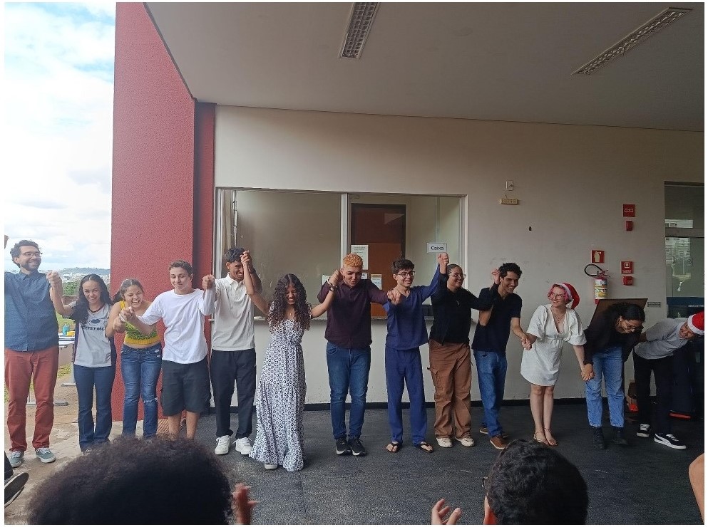 Para encerrar as atividades letivas do ano de 2025 no CEFET Contagem e desejar boas festas à comunidade cefetiana, no dia 17 de dezembro de 2025, um grupo de estudantes do 2º ano do Curso Técnico em Informática apresentou adaptação teatral do texto literário “A Christmas Carol” (Um Conto de Natal) de Charles Dickens. A peça aconteceu no pátio do térreo, em frente ao restaurante. Além da produção e atuações dos estudantes do 2º ano de Informática, a encenação contou com a participação especial do professor de Literatura Paulo Caetano e de estudantes do 1º ano de Informática e de Controle Ambiental. Essa iniciativa estreia a programação do Cefestival, projeto coordenado pela profa. de Inglês Kaciana Alonso, que visa incentivar e revelar os interesses e aptidões artístico-culturais dos alunos dos cursos técnicos do CEFET-Contagem. A equipe organizadora agradece a presença de todos e todas presentes, o apoio técnico de som: Renato Castanheira, Gil Gonçalves, Fabiano Magela, a participação do prof. Paulo Caetano, a colaboração da profa. de Artes Iara Augusto, da bibliotecária Fabiana Pés e do Diretor do CEFET-Contagem Gustavo Araújo Lima.